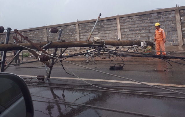 Chiều 15/7, trao đổi với PV Dân trí, văn phòng UBND TX Phú Mỹ (tỉnh BR-VT) cho biết các đơn vị có liên quan thuộc điện lực Phú Mỹ, UBND phường Mỹ Xuân…đang phối hợp khắc phục sự cố hàng loạt trụ điện trên QL51 (đoạn qua địa bàn phường Mỹ Xuân) bị giông lốc quật ngã, gây mất điện trên diện rộng và ảnh hưởng giao thông.