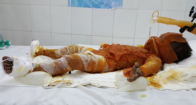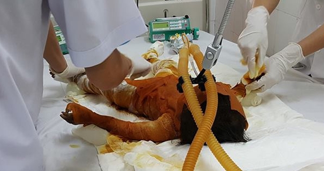 Theo các bác sĩ, cháu Uyên nhập viện trưa 30-8, bỏng 90% da toàn thân, trong đó bỏng độ 2-3 chiếm tỷ lệ cao. Bé đang được thở máy, dịch truyền và thuốc trợ tim mạch. Do gia đình bệnh nhi thuộc diện nghèo khó, nên Bệnh viện Sản - Nhi tỉnh Sóc Trăng đang vận động các nhà hảo tâm hỗ trợ bé gái.