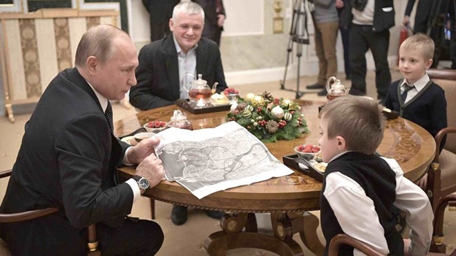| Tổng thống Nga ăn trưa cùng gia đình bé Palanov. Ảnh: TASS |