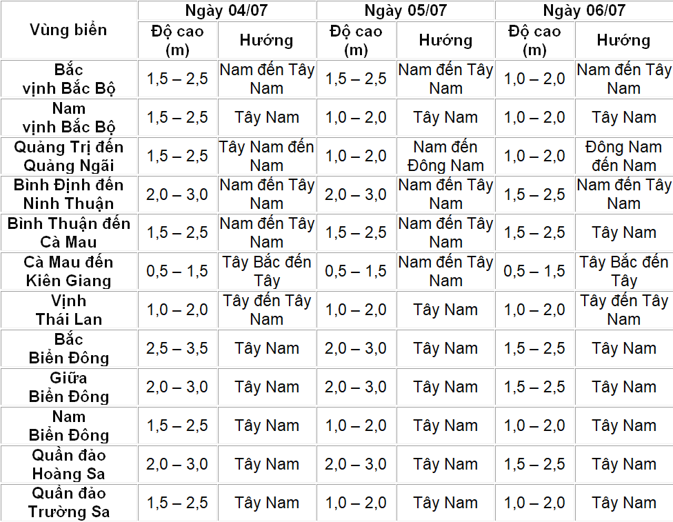 I. Dự báo sóng biển ngày 04/07/2022 đến 06/07/2022