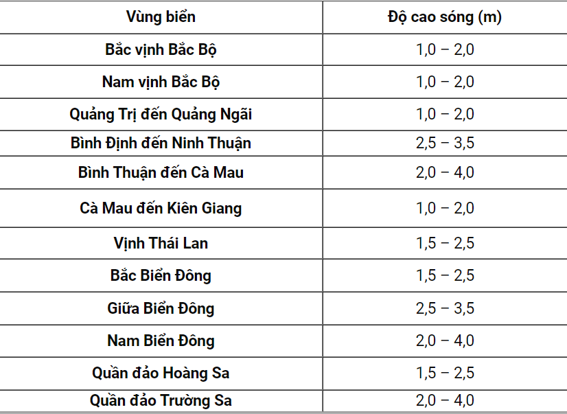 II. Nhận định sóng biển ngày từ 07/07/2022 đến 13/07/2022