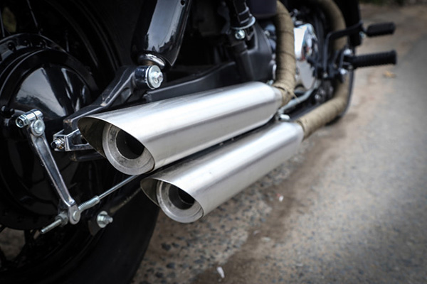 | Phần ống xả đơn trên mẫu xe cũ cũng được làm lại thủ công, thành cụm ống xả kép bắt mắt hơn. Lon pô được thiết kế lại và cổ pô được bọc vải đậm chất cổ điển. |