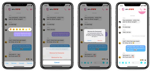 Theo đó, với tính năng “Remove for everyone” sẽ cho phép người dùng xóa tin nhắn của bạn khỏi cuộc hội thoại.