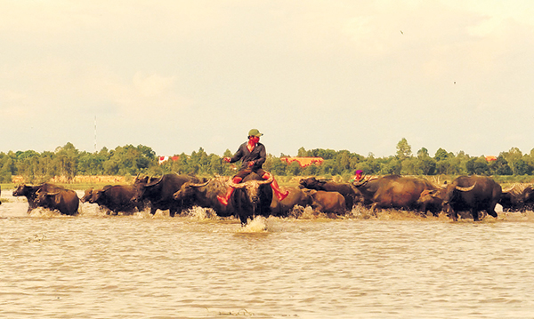 “Mấy năm nước lũ về lớn như năm 2000, 2011, cả cánh đồng này không còn một chỗ nào không bị ngập. Cỏ bị nước ngập lút đọt chết ráo. Dân nuôi trâu phải chạy qua tận miệt Tân Hưng, Long An hay qua tận đồng nước bạn Campuchia để cầm trâu suốt mấy tháng ròng, chờ nước rút”, Hai Lực thổ lộ.