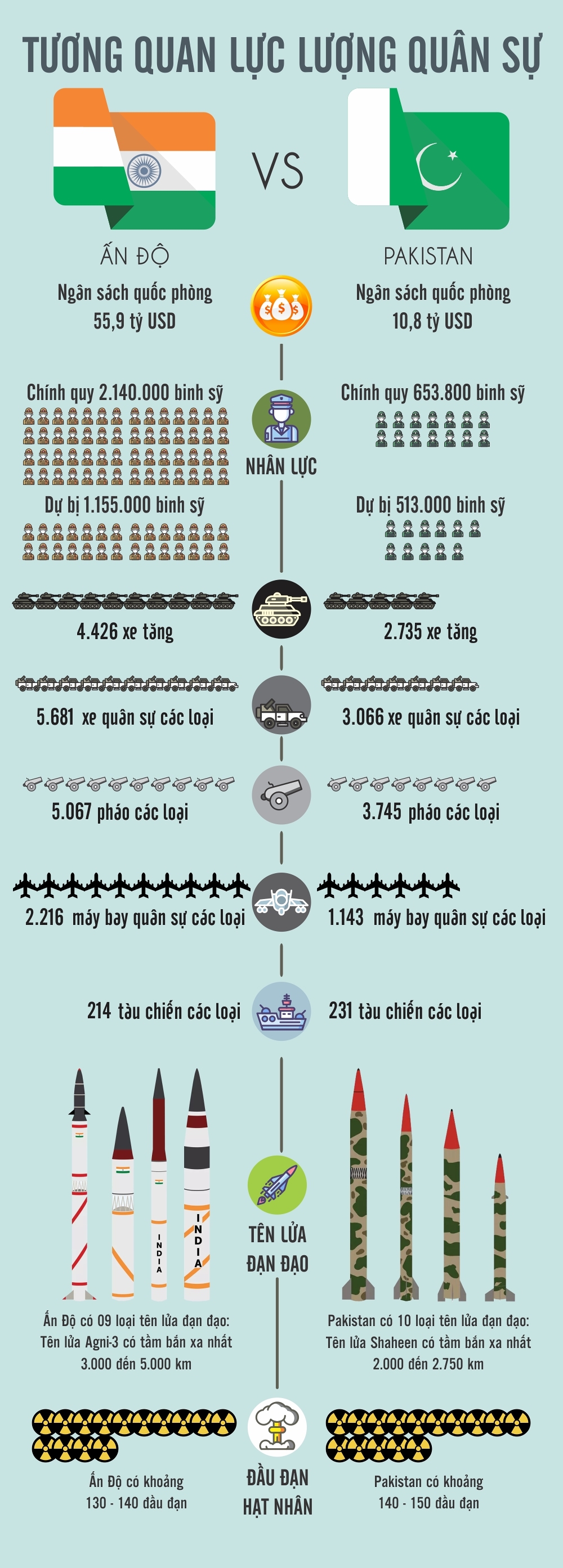 Infographic: Tương quan lực lượng quân sự Ấn Độ và Pakistan