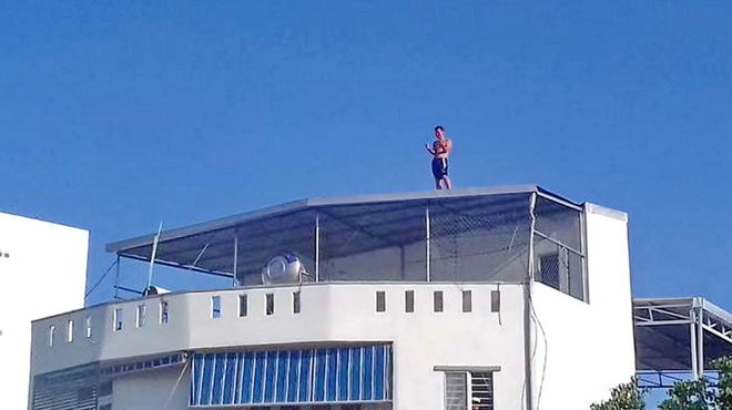 Nhận được tin báo, Cảnh sát 113 Công an tỉnh Khánh Hòa và Công an phường Vĩnh Hòa đến hiện trường vận động, nhưng nam du khách nêu trên không chịu rời sân thượng căn nhà.