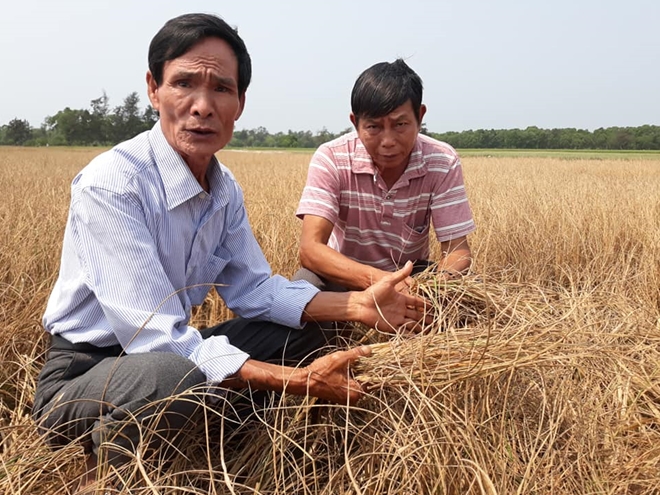 | Nhiều cánh đồng lúa cũng bị chết khô vì thiếu nước tưới tiêu. |