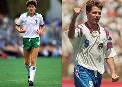 | Cầu thủ trẻ tuổi nhất N. Whiteside (ảnh trái) và tuyển thủ Nga O. Salenko. |