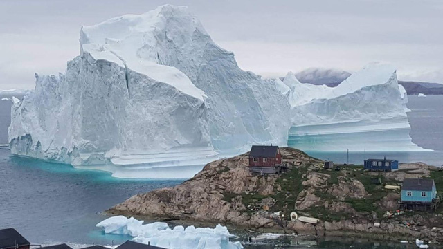 Một núi băng trôi khổng lồ 11 triệu tấn đang vượt hẳn lên cao hơn một ngôi làng nhỏ ở Greenland. Hình ảnh này được ghi lại một trong những tấm ảnh khiến bạn sửng sốt nhất.