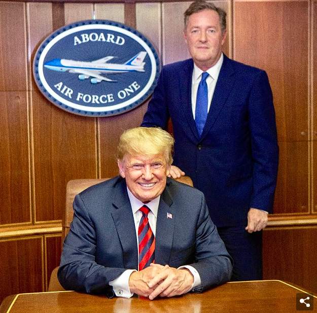 Tổng thống Donald Trump và nhà báo Anh Piers Morgan trên AirForce One. Ảnh: Dailymail. |