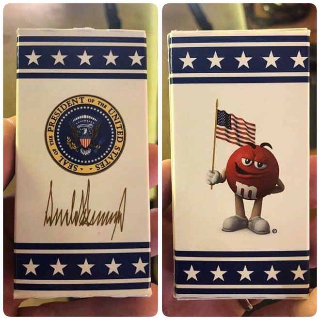 Hộp kẹo M&M phiên bảo Donald Trump có một không hai trên AirForce One. Ảnh: Dailymail. |