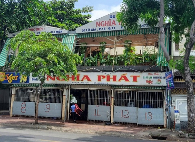 Quán ăn Nghĩa Phát ở số 20 đường Lữ Gia, phường 15, quận 11 được chính quyền địa phương yêu cầu đóng cửa, sau khi ca tái dương tính với virus SARS-CoV-2 đang trú ở quận 3 cùng nhóm bạn đến đây nhậu.