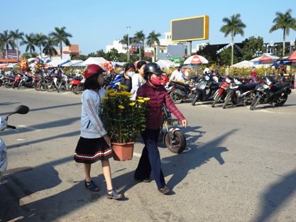 | Tấp nập người đi chợ hoa ngày 29 Tết ở Quảng Trị. |