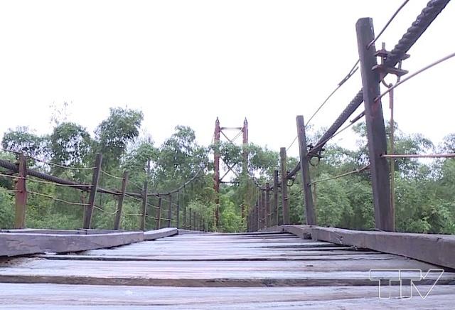 Do thời gian cầu được đưa vào sử dụng đã lâu, cộng với thời tiết mưa lũ nên các giây néo giữ thăng bằng của cầu đã giảo và hoen rỉ. Mặt cầu và lan can 2 bên cầu khá ọp ẹp. Nhiều chỗ gỗ đã mục có thể rơi bất kỳ lúc nào.