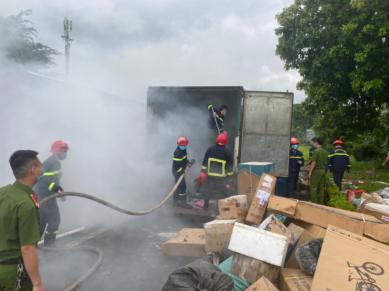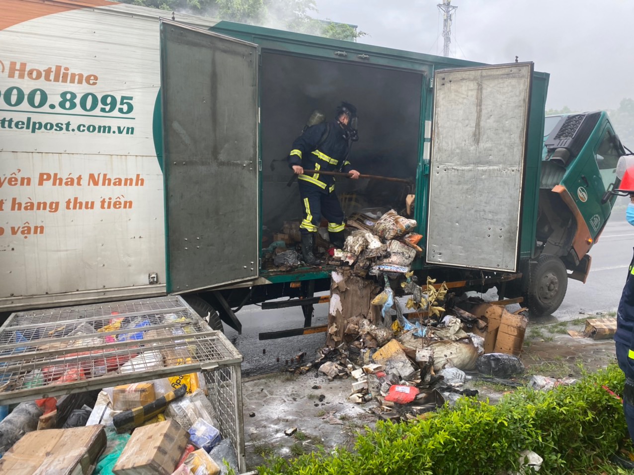 Ngay sau khi nhận tin báo, đơn vị đã điều động 02 xe chữa cháy cùng 14 cán bộ chiến sỹ đến hiện trường triển khai công tác chữa cháy, lực lượng cứu nạn cứu hộ nhanh chóng di chuyển hàng hóa, bưu phẩm trên xe đến khu vực an toàn. Sau 15 phút, đám cháy được dập tắt hoàn toàn.