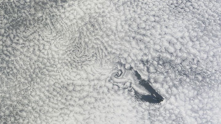 | Hình ảnh một đám mây xoáy được vệ tinhTerra của NASA chụp lại tại khu vực đảoSaint Helena, Nam Đại Tây Dương |