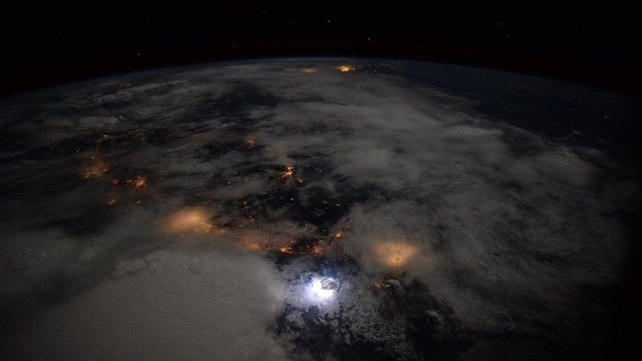 | Hình ảnh được chụp từ khoảng cách gần 333,3 km do Phi hành gia Randy Bresnik đang có mặt trên Trạm Vũ trụ Quốc tế thực hiện ghi lại những đám mây đang bao quanh trái đất cùng tia sét. |