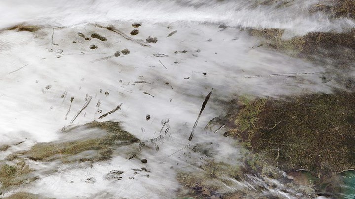 | Vẫn là một tác phẩm nghệ thuật của "nghệ sĩ" vệ tinh Terra tới từ NASA, hình ảnh bóng của những đám mây tại Ấn Độ Dương. |