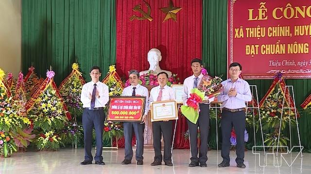 Ghi nhận những nỗ lực của cấp ủy, chính quyền và nhân dân xã Thiệu Chính, Chủ tịch UBND tỉnh Thanh Hoá đã ký quyết định công nhận xã Thiệu Chính, huyện Thiệu Hoá đạt chuẩn nông thôn mới năm 2018 và tặng thưởng 1 tỷ đồng. Dịp này, UBND huyện Thiệu Hoá cũng đã trao bằng công nhận xã đạt chuẩn văn hoá, trao thưởng 500 triệu đồng cùng nhiều phần quà cho các tập thể và cá nhân đã có thành tích xuất sắc trong phong trào “Chung tay xây dựng nông thôn mới” giai đoạn 2011 – 2018.
